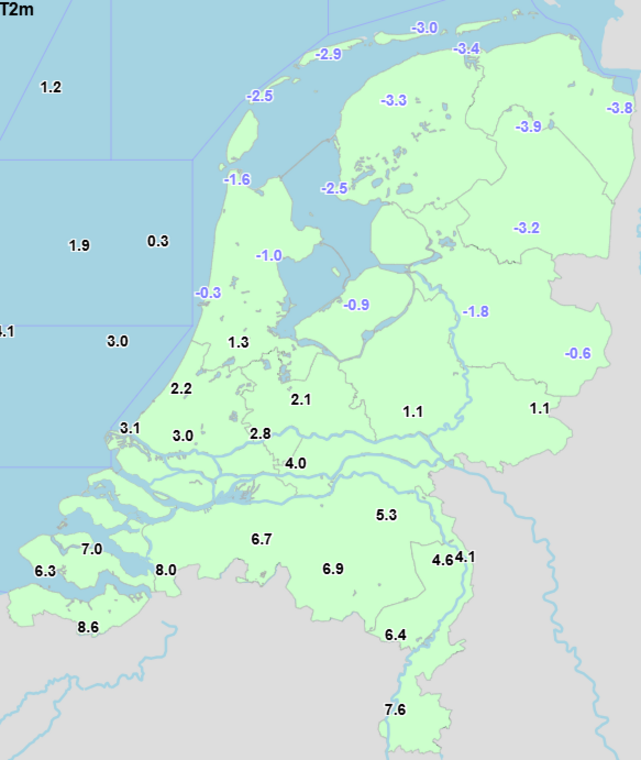 De code oranje in Noord-Holland werd beëindigd om 04:20 uur (figuur 6). Voor de overige provincies werd de waarschuwing woensdag nog een aantal keer verlengd omdat de ijzel nog niet gesmolten was. In Overijssel en Flevoland werd de code oranje beëindigd om 10:03 uur, op de Waddeneilanden om 14:05 uur. De code rood in Friesland en Drenthe werd ook 14:05 uur beëindigd. In Groningen werd de code rood als laatste beëindigd (14:56 uur), omdat de temperatuur in die provincie langzamer opliep dan in de andere regio’s.