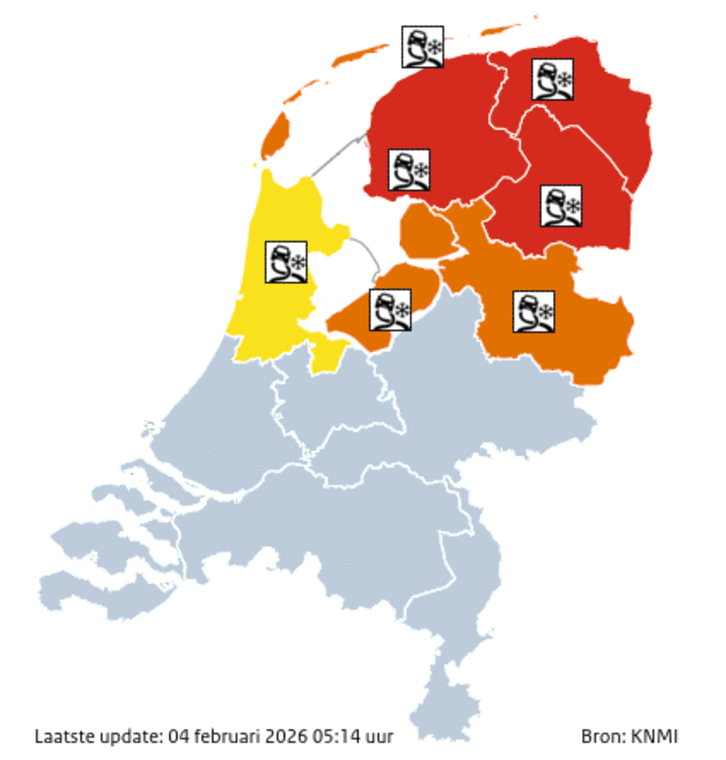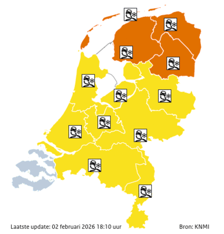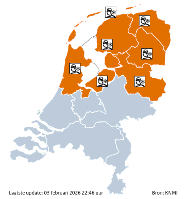 In de provincies Friesland, Groningen en Drenthe werd woensdagochtend vanuit de Veiligheidsregio's een NL-Alert afgegeven waarin wordt gewaarschuwd voor de extreme weersomstandigheden.