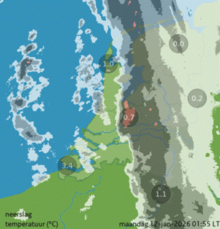 De laatste neerslag verlaat het noordoosten van het land rond 9:00 uur in de ochtend. De wegdektemperatuur ligt daar dan nog wel onder het vriespunt. Rond 10:00 uur komen ook de wegdektemperaturen in het noordoosten boven het vriespunt en is de gladheid op de hoofdwegen voorbij. Wel is er dan op de binnenwegen en plekken waar niet gestrooid wordt nog enige tijd kans op gladheid door sneeuw- en ijsresten.