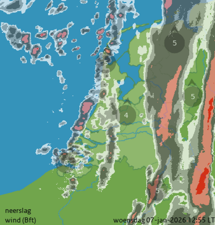 De sneeuw bereikt in de nacht al het westen van het land. Het sneeuwgebied trekt in de ochtend oostwaarts en de wind neemt toe. Op veel plekken aan de kust worden in de nacht en ochtend windsnelheden van 6, soms 7 Bft gemeten, met windstoten van 75-90 kilometer per uur.