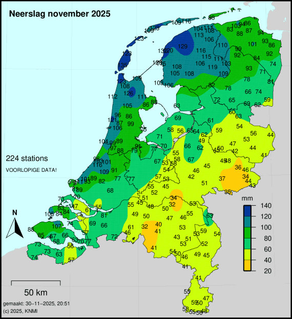 Maandsommen neerslag, norma...