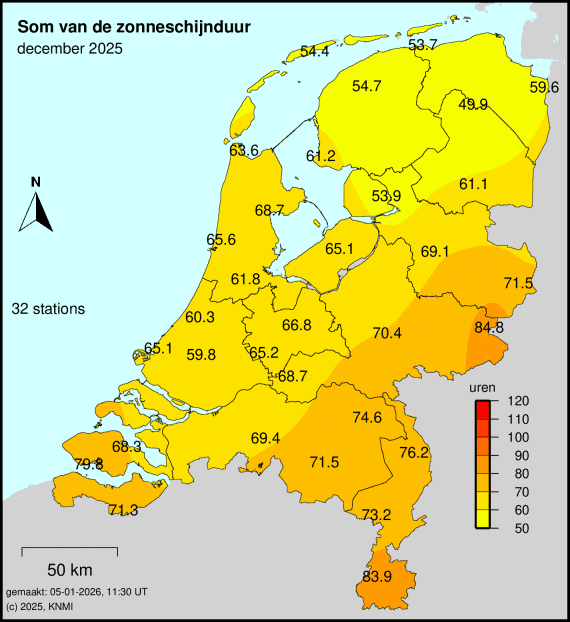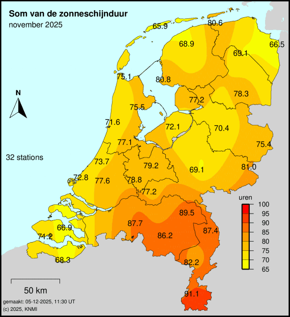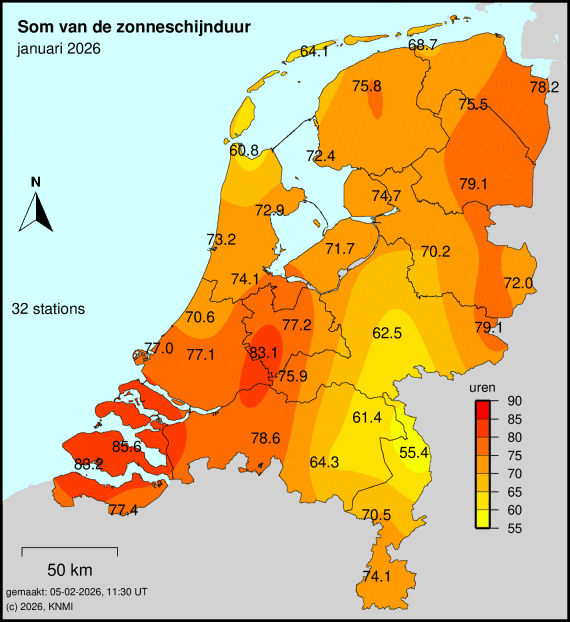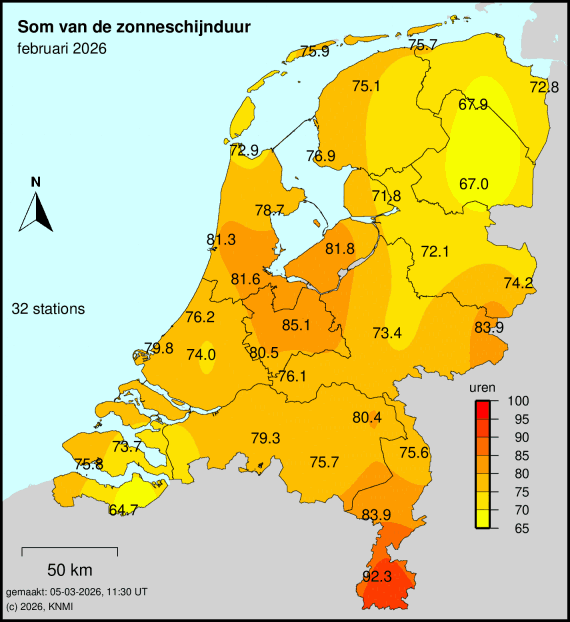 Maandsommen zonneschijnduur, normalen, anomalieën