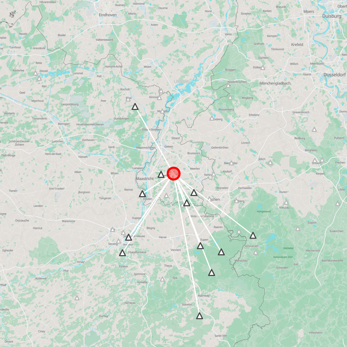 | Station | Network | Distance (km) | Phase | Tijd (UTC) | Residual (s) | Pha Weight | Magnitude | Mag Weight |