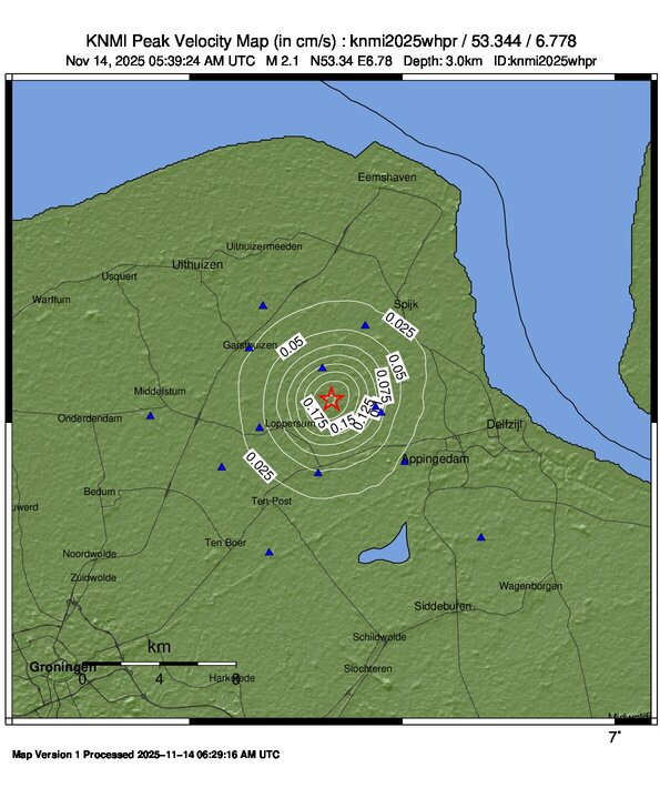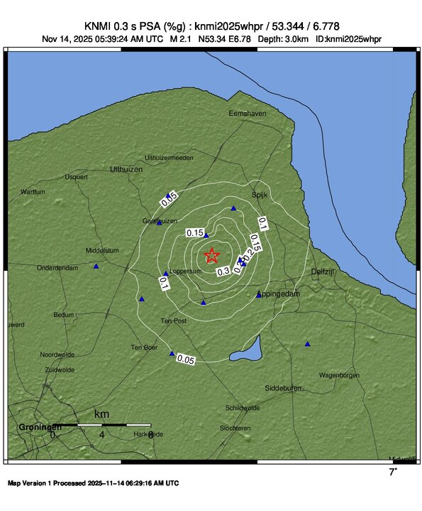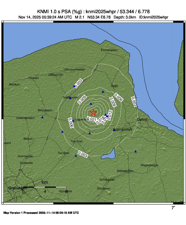 Het KNMI publiceert ShakeMaps voor geinduceerde bevingen met een magnitude groter dan 2.0 voor de provincie Groningen.