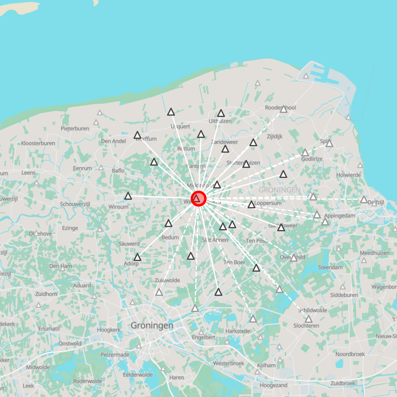 Onderstaande tabel toont de aankomsttijden en de magnitude per stations van trillingen, ten gevolge van de beving, die zijn waargenomen door seismische stations in en rond Nederland.