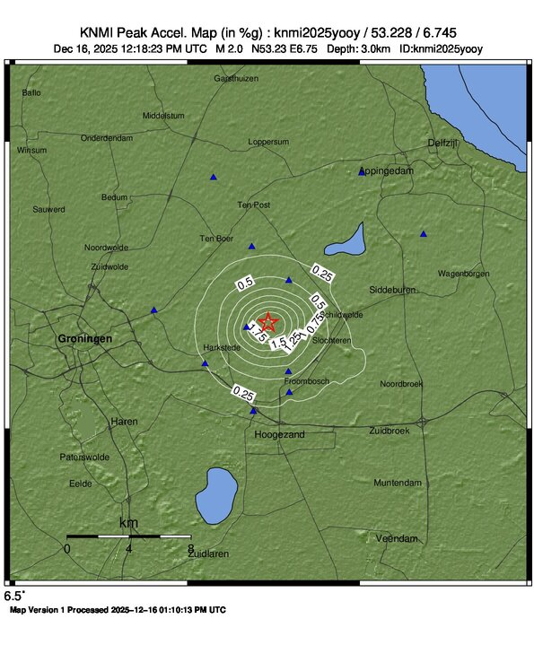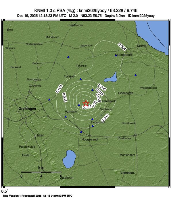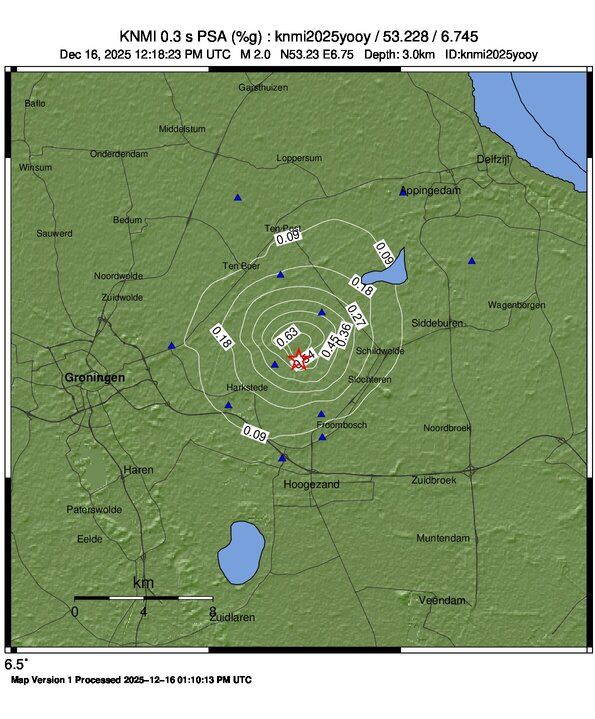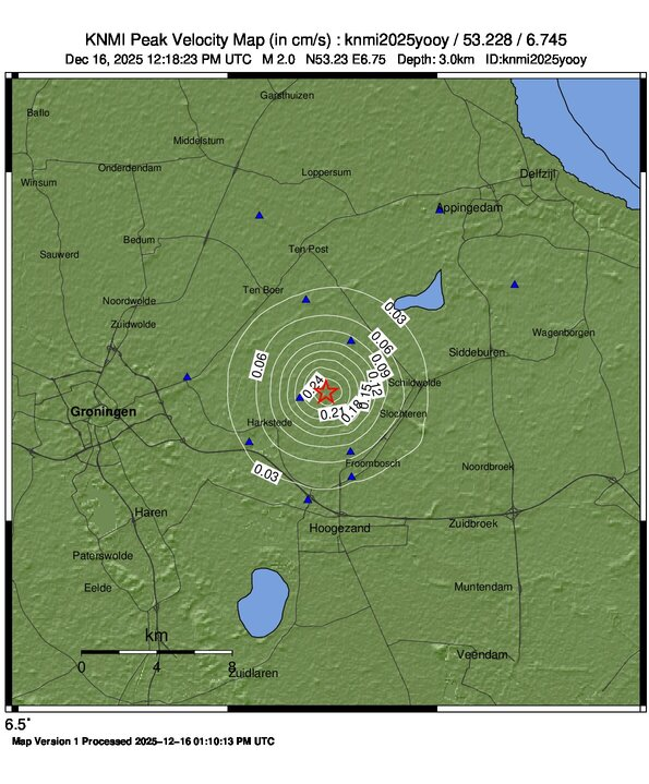Het KNMI publiceert ShakeMaps voor geinduceerde bevingen met een magnitude groter dan 2.0 voor de provincie Groningen.