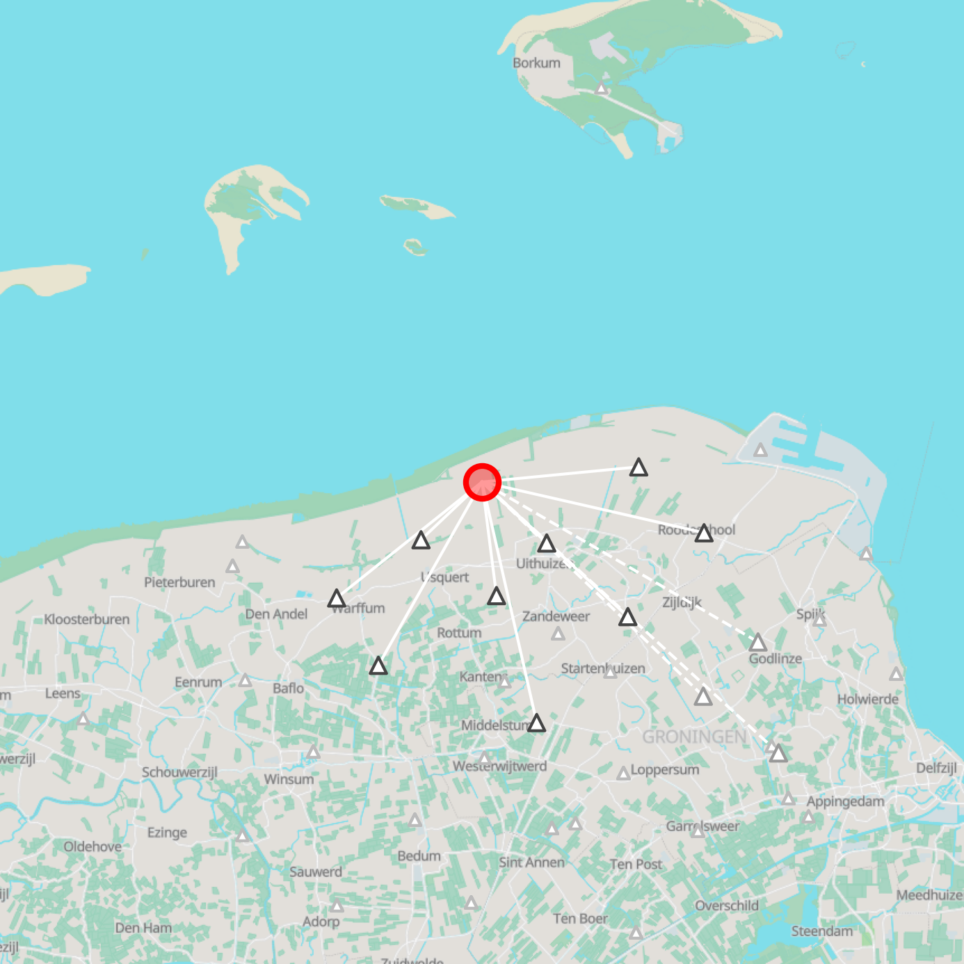 Onderstaande tabel toont de aankomsttijden en de magnitude per stations van trillingen, ten gevolge van de beving, die zijn waargenomen door seismische stations in en rond Nederland.
