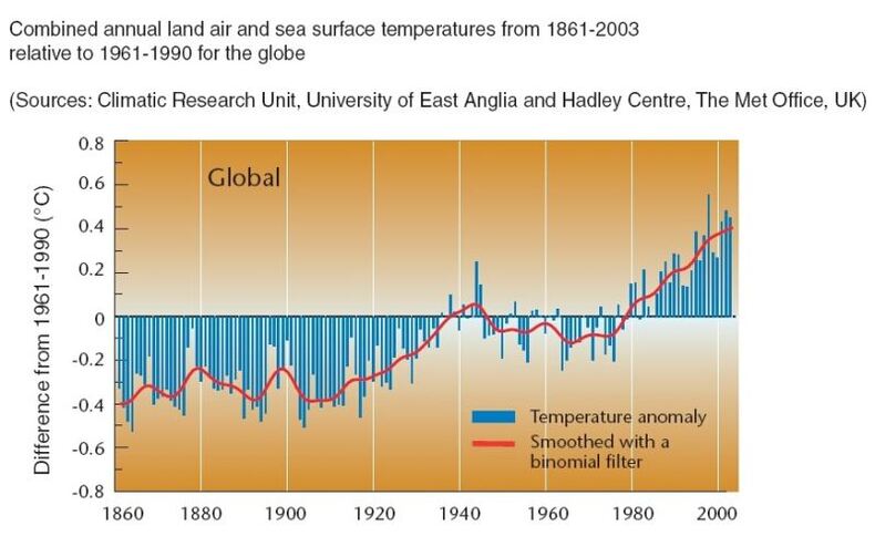 Dit jaar wordt met een afwijking van +0,45 graden boven het gemiddelde (1961-1990) wereldwijd het op twee na warmste jaar sinds het begin van de metingen in 1860. Alleen 1998 (+0,55) en 2002 (+0,48) waren nog warmer. In de laatste kwart eeuw is de opwarming drie keer zo groot als in de afgelopen honderd jaar. Sinds het jaar 1900 is de aarde 0,7 graden warmer geworden. Op het noordelijk halfrond waren de jaren negentig van de vorige eeuw en 1998 de warmste in zeker 1000 jaar. Na 2003 volgen 1997 (+0,43), 2001 ( +0,42), 1995 (+0,38), 1990 (+0,34) en 1999 (+0,34), 2000 (+0,29), 1988 (+0,25), 1987 (+0,24) en 1996 (+0,22).