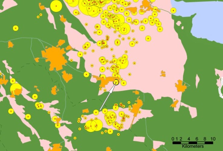 Er zijn bij het KNMI middels het enqueteformulier een aantal meldingen uit Hoogezand binnen gekomen. Deze aardbeving houdt verband met de gaswinning in het Groningen gasveld. Het kaartje geeft de seismiciteit van Noord-Oost Nederland. Aardbevingen zijn als gele rondjes weergegeven. De beving van 21 augustus is met een pijl aangeduid. De grotere plaatsen zijn oranje, de gasvelden roze.