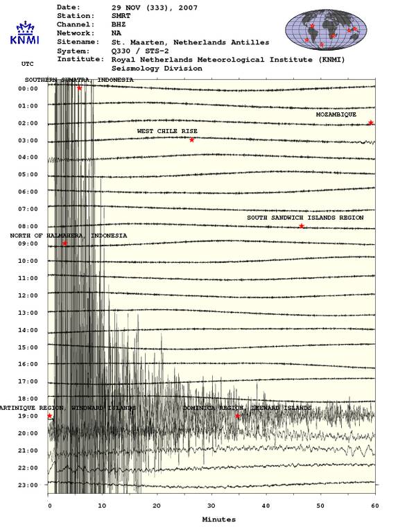 Op 29 november 2007 om 19:00 UT (20:00 NL tijd, 15:00 lokale tijd) heeft er een aardbeving met een kracht van 7,4 op de schaal van Richter plaatsgevonden 40 kilometer ten noordnoordwesten van het eiland Martinique in het Caribisch gebied.