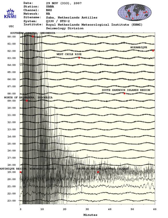 Het KNMI heeft sinds een jaar ook drie seismische meetstations op de Antillen, namelijk op Sint-Maarten, Sint Eustatius en Saba. Deze eilanden liggen op ongeveer 350 km afstand van de aardbeving en hebben de beving dan ook zeer goed geregistreerd. Ook het meetstation in Nederland in de Heimansgroeve heeft deze beving geregistreerd.