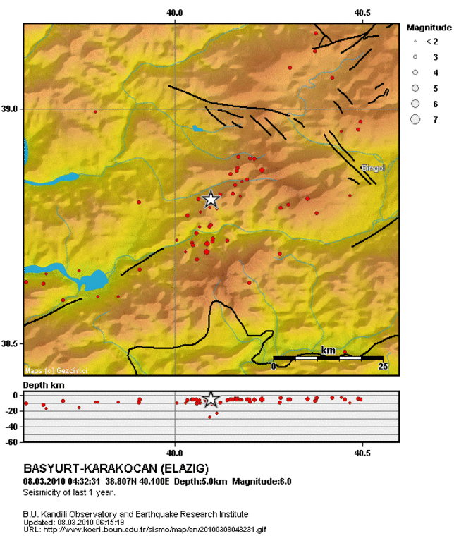 Maandagmorgen, 8 maart 2010, is het oosten van Turkije opgeschrikt door een aardbeving, waarbij tientallen doden vielen. De aardbeving vond plaats in de vroege morgen (4:32 lokale tijd) en had een sterkte van 6.0 op de schaal van Richter. Ruim 30 naschokken zijn gevolgd in de eerste 6 uur na de beving, waarvan de grootste een sterkte van 5.5 op de schaal van Richter had.