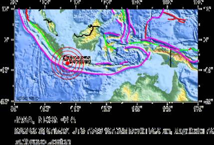 Voor de kust van Indonesië komen vaker zware aardbevingen voor. Deze worden veroorzaakt door het schuiven van de Australië-plaat in noordoostelijke richting onder de Sunda-plaat. Dit gebeurd met een snelheid van ongeveer 6 centimeter per jaar, wat grote wrijving en spanning in de ondergrond veroorzaakt.
