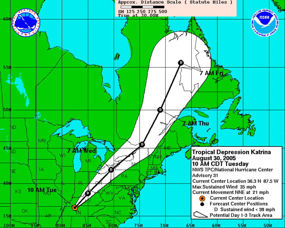 Gemiddeld komt het maar eens in de vijftien jaar voor dat een "major" hurricane van klasse 3 of 4 binnen een straal van 60 kilometer rond New Orleans aan land komt. De laatste hurricane die dwars over New Orleans trok was Betsy in 1965 die klasse 4 bereikte.