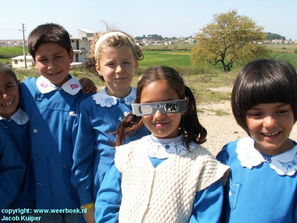 In 1998 zag ik een 3 minuut en 30 seconden durende eclips bij nagenoeg onbewolkt weer op Curaçao, in 1999 in de omgeving van Reims een vrij korte eclips (net 2 minuten) met tamelijk veel wolken en nu een waarbij er hoge cirruswolken in een deel van de hemelkoepel te zien waren. Die wolken vormden een heel fraaie extra sfeervolle dimensie, die ik bij de andere twee eclipsen niet zo had gevoeld. Aan de kust in het plaatsje Side was het verschrikkelijk druk. Tienduizenden eclipstoeristen hadden zich daar verzameld in de buurt van de oude tempel, waar nog een viertal zuilen van overeind staat. Grote televisiezenders (o.a. CNN-Turk) zonden het hele spektakel rechtstreeks uit vanaf die plek. Ook vanuit Turkije zelf waren veel mensen naar de totaliteitszone afgereisd. Schoolkinderen uit het plaatsje Kusadasi (West-Turkije) hadden hun eigen eclips-Tshirt aan. Andere kinderen uit het dorpje Evrenseki lieten me trots de eclipsbril zien waarmee ze de zon gingen bekijken.
