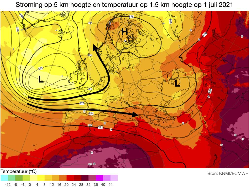 Grondige kennis van intransitiviteit zou dus kunnen helpen bij het maken van lange termijn verwachtingen. Wanneer we kijken naar de atmosferische circulatie van de afgelopen maand sinds het begin van deze zomer en aannemen dat de zomer nog een tijdje in een vergelijkbare dynamiek blijft, zijn we voorzichtig positief voor de komende maanden. De huidige circulatie heeft meer weg van een geblokkeerde situatie dan een westelijke stroming en op grond daarvan mogen we deze zomer wellicht vaker hoge druk en mooi weer verwachten dan een westelijke stroming met kwakkelweer (figuur 3).