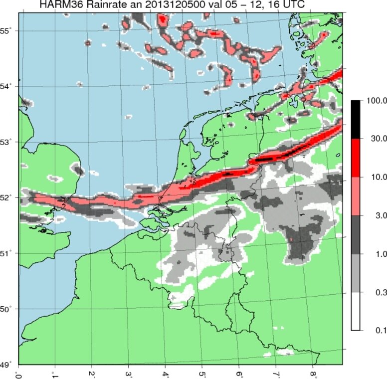 De stormdepressie die op 5 december over de noordelijke Noordzee trok ontwikkelde zich in een rap tempo. In de kern van de depressie daalde de luchtdruk met maximaal 10 tot 12 hPa per zes uur. Zo’n snelle vorming van een stormdepressie (rapid cyclogenisis) komt vaker voor, maar dat zo'n sterk uitdiepende depressie zo dicht in de buurt van ons land komt is bijzonder.