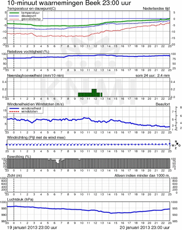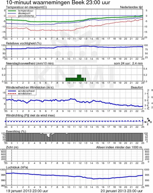 In het midden en noorden van het land viel de neerslag in de vorm van sneeuw. Door de toenemende luchtdrukverschillen boven Nederland nam de wind in het noorden behoorlijk toe: in open gebieden tot windkracht 6 boven land, boven water soms windkracht 8. Deze combinatie van sneeuw en krachtige wind was reden om code oranje uit te geven voor de noordelijke provincies vanwege de grote kans op stuifsneeuw en het ontstaan van sneeuwduinen.