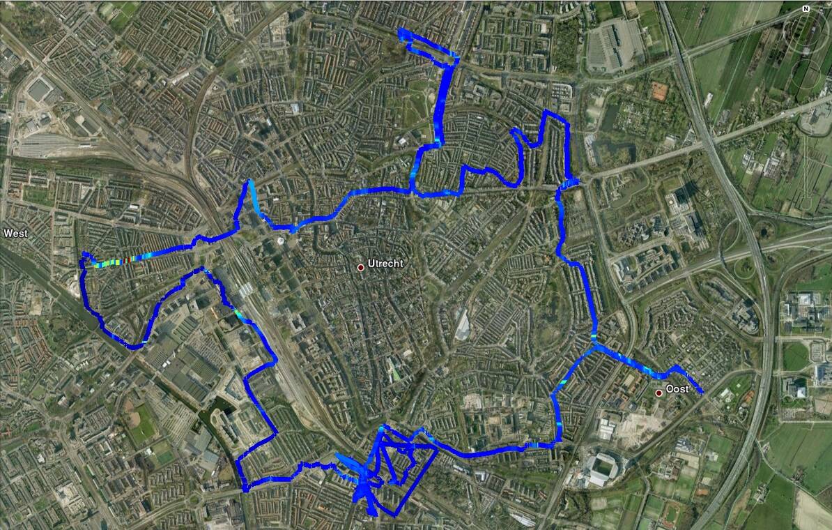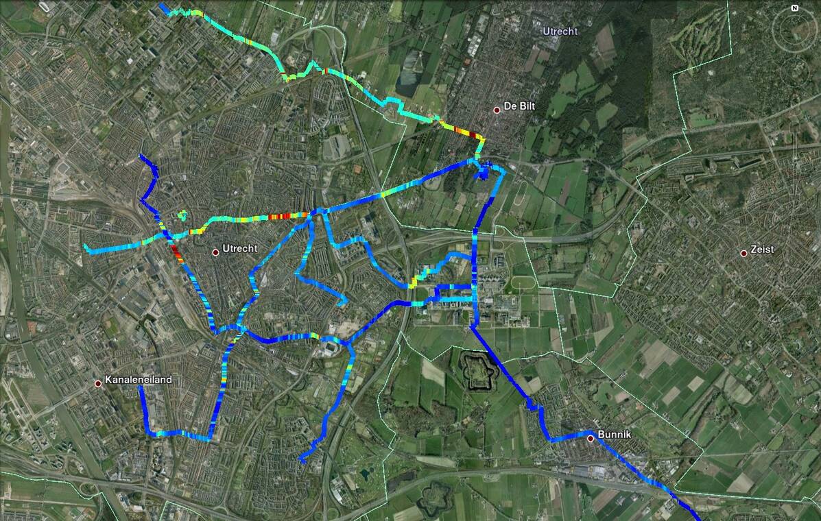 Dit voorjaar stelde het KNMI een innovatiebeurs beschikbaar voor het fietsmeetexperiment met een mobiel lichtgewicht meetinstrument waarmee op straatniveau naast de hoeveelheid NO2 ook weergegevens worden gemeten. Het meetinstrument dat voor de metingen op de fiets is gebruikt is ontwikkeld door het KNMI. Medewerkers van het KNMI en studenten van het Utrechtse University College fietsten in juni en begin juli met die meetstations door Utrecht. Ook tijdens de Grand Départ van de Tour de France zijn de Utrechtse binnenstad metingen verricht. De tourstart was een ideale gelegenheid om te meten wat de lokale effecten van het verkeer zijn op NO2. De binnenstad van Utrecht was toen immers vrijwel geheel afgesloten.