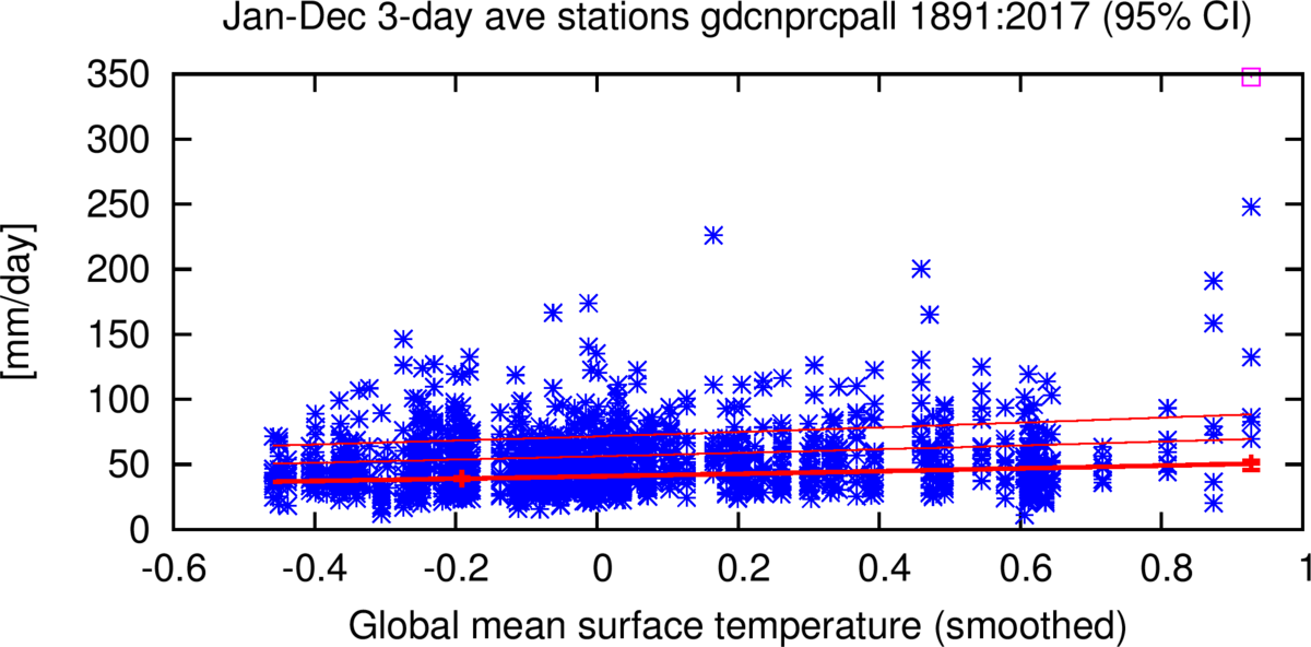 Waarnemingen van extreme regenval langs de kust van de Golf van Mexico laten zien dat dit soort extremen sterk zijn toegenomen. De uitvoer van twee hoge-resolutie klimaatmodellen bevestigt dat dit grotendeels veroorzaakt wordt door de opwarming van de aarde, die op zijn beurt komt door de toename van broeikasgassen in de atmosfeer. Dit ligt ook voor de hand: door het warmere water van de Golf van Mexico is er meer vocht in de atmosfeer wat ook meer regen geeft. Het lijkt er op dat de wind ook versterkt wordt door de energie die daarbij vrijkomt, zodat de toename in de regen nog groter is dan alleen de hogere luchtvochtigheid zou voorspellen. Mogelijk blijven orkanen ook vaker op één plek hangen. Alles bij elkaar genomen vinden we een verdrievoudiging van de kans op zoveel regen in drie dagen (tussen de 1,5 en 5 keer) sinds 1900. Dit komt overeen met een toename van ongeveer 15 procent (8 tot 19 procent) in de hoeveelheid regen.