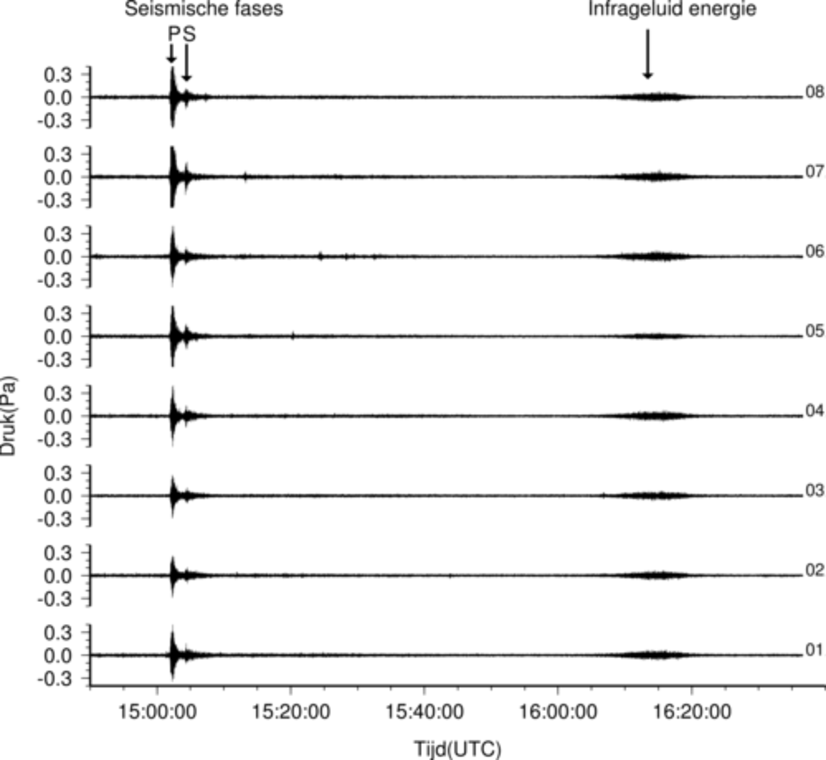 Deze laagfrequente geluidsgolven kunnen op duizenden kilometers afstand gemeten worden omdat deze nauwelijks gedempt worden. Dit infrageluid is voor mensen niet hoorbaar en/of voelbaar omdat het heel lage frequenties zijn, ver onder de gehoorgrens.