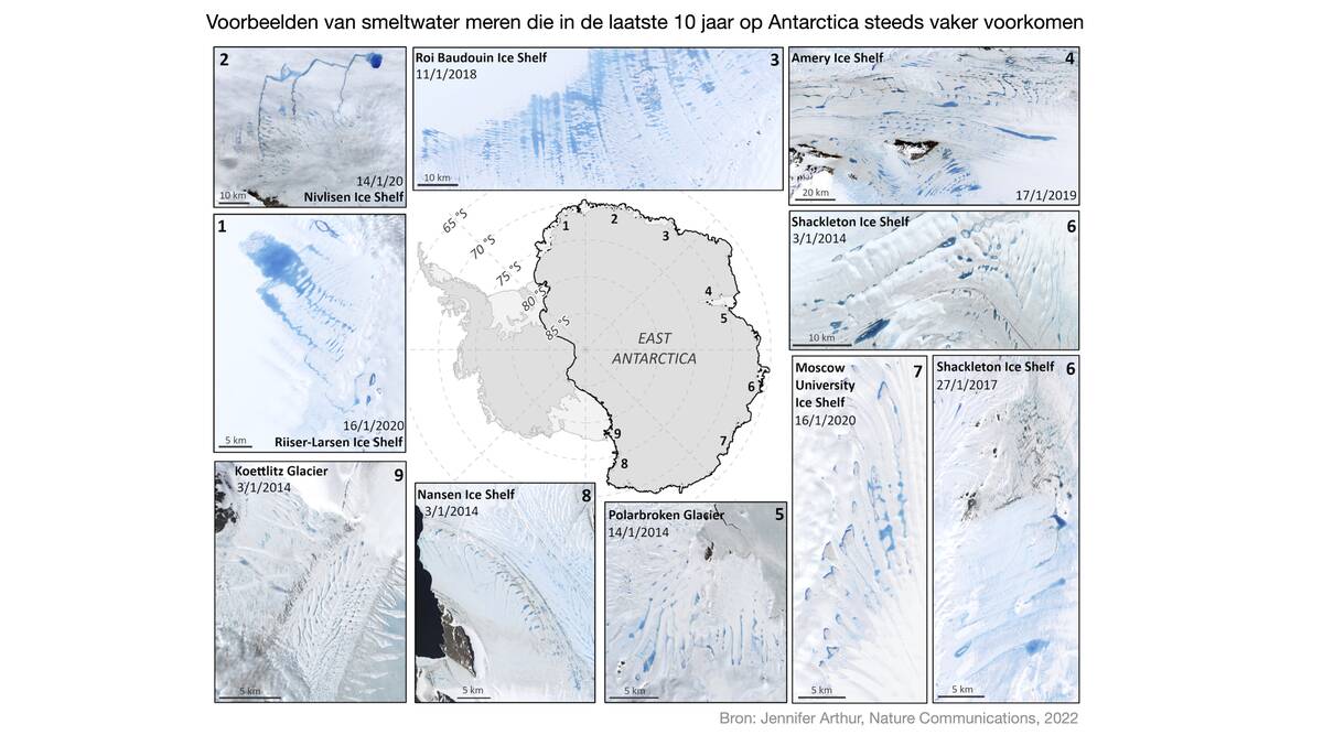 Wat op Groenland al decennialang doodnormaal was, is de laatste 10 jaar ook op Antarctica begonnen: smeltwater verzamelt zich in rivieren en helderblauwe meren bovenop de ijskap. Van de Antarctische IJskap is bekend dat deze vooral onder de drijvende ijsplaten afsmelt vanwege het opwarmende oceaanwater. Bovenop de ijskap was het nog te koud, maar dat is de laatste jaren aan het veranderen. Door de toenemende temperatuur van de luchtlagen begint de ijskap ook aan de bovenkant af te smelten.