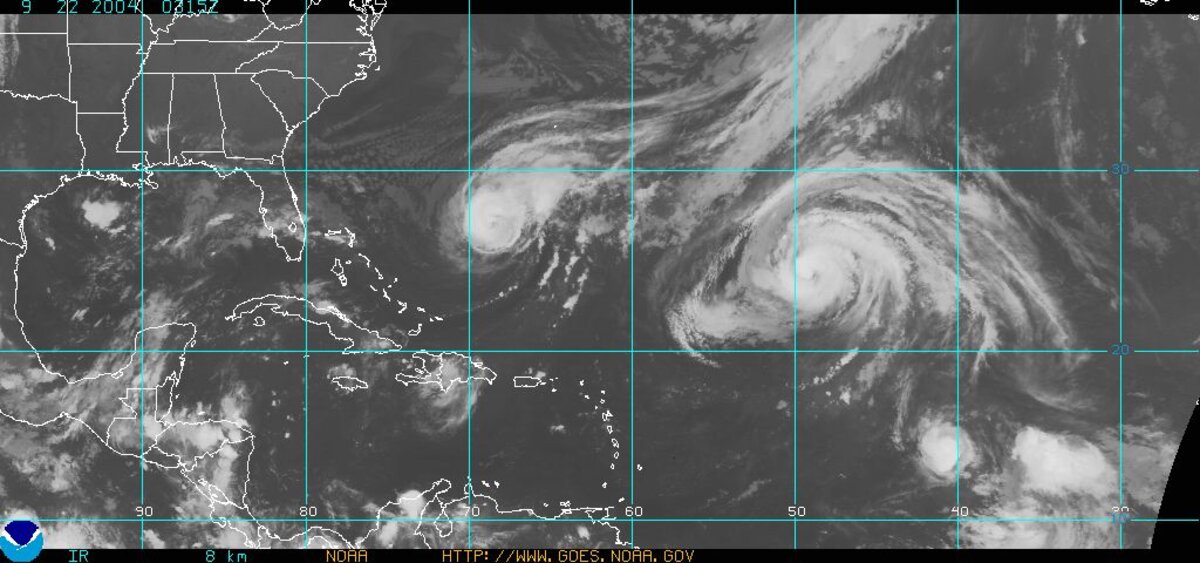 In het Caribisch gebied zijn inmiddels al verschillende tropische stormen en hurricanes gepasseerd. Orkaan Alex was 3 augustus de eerste, gevolgd door Bonnie, Charley, Frances en Ivan. Charley liet in augustus vooral in de staat Florida een spoor van vernielingen na. Door hurricane Frances zaten miljoenen mensen in Florida zonder stroom of moesten hun huizen uit. Charley en Frances waren van de categorie 4 (op de schaal van 1-5). Ook Ivan (de Verschrikkelijke) heeft aan meer dan 100 mensen het leven gekost. Vooral Grenada moest het ontgelden. Ivan was van de hoogste categorie, categorie 5. Na Jeanne woeden nu Karl en Lisa op de oceaan, maar zoals het er nu (di 21 sep) naar uitziet woeden deze uit op de Oceaan. Karl is de zevende orkaan van dit seizoen in dit gebied en heeft zich ontwikkeld tot orkaan van categorie 4.