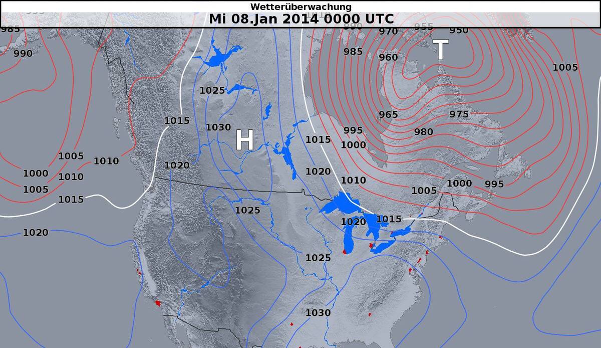 Deze luchtdrukverdeling is het gevolg van een verschuiving van de polaire vortex. Dit is een gordel van westwaartse winden in de hogere atmosfeer (~ 5km hoogte ) rond de Noordpool. Deze polaire vortex kan sterke meanderingen vertonen en soms ook van de pool af verschuiven. In de afgelopen periode was het middelpunt van de polaire vortex naar het oosten van Noord Canada verschoven, waardoor ijzige poollucht naar de oostkust van de Verenigde Staten kon stromen.