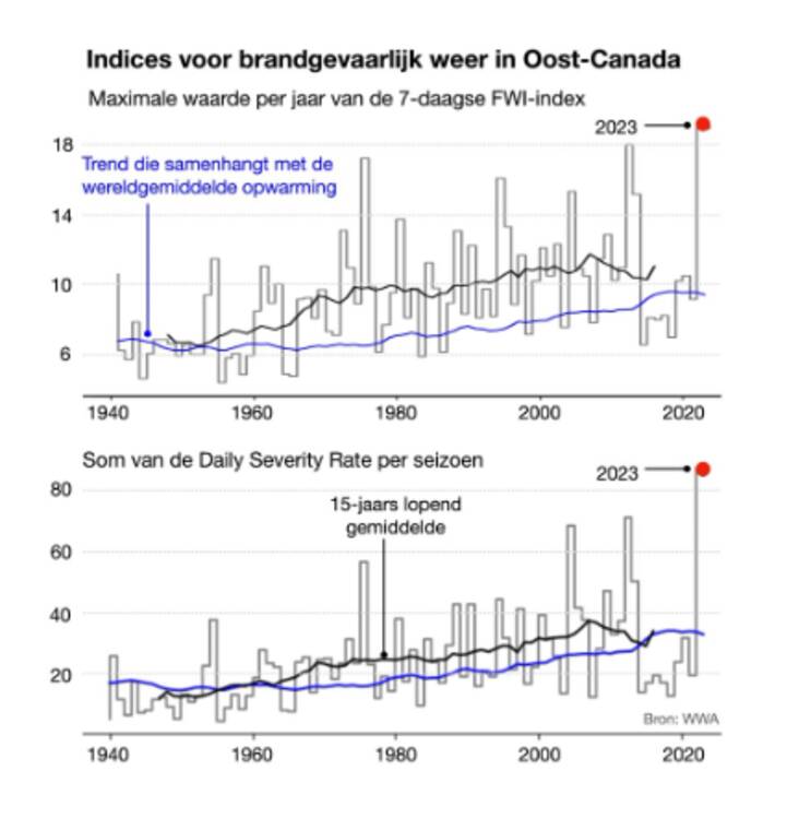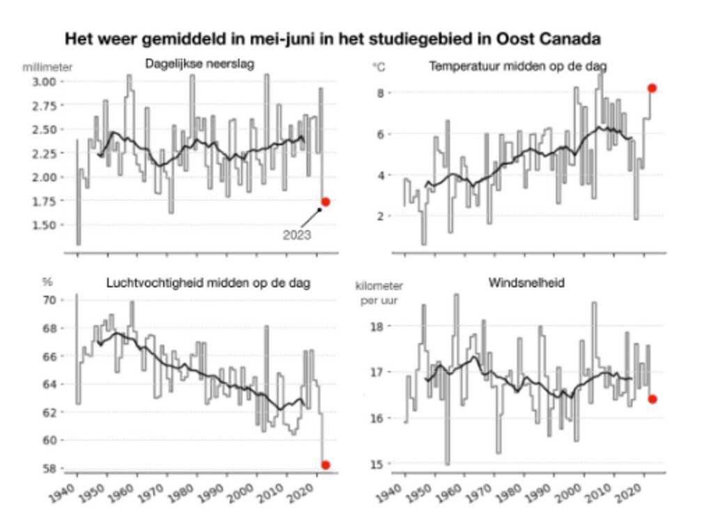 Weersomstandigheden die de kans op bosbranden verhogen komen vaker voor door klimaatverandering. In Oost-Canada is de kans op het extreem brandgevaarlijke weer van deze zomer inmiddels meer dan verdubbeld. Dit blijkt uit een nieuwe World Weather Attribution (WWA) studie, uitgevoerd door een internationale groep wetenschappers met bijdragen van het KNMI.