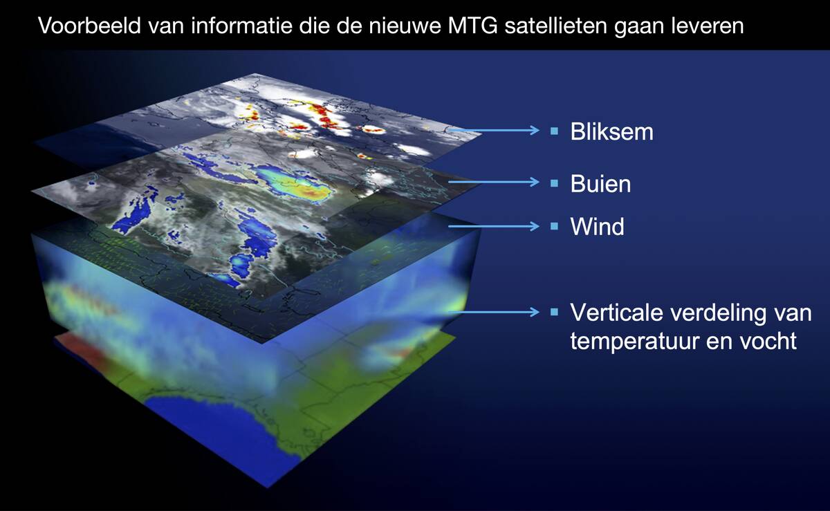 De 16 beelden per 10 minuten en de gemeten lichtflitsen geven informatie over onweer, buien, wind en temperatuur (figuur 2). Het geeft onze meteorologen op korte termijn ('nowcasting') extra informatie over gebieden waar gevaarlijk weer zou kunnen optreden. Dit is essentieel voor ons Early Warning Centre om tijdig te kunnen waarschuwen. Bovendien wordt de kwaliteit van weermodellen verbeterd doordat ze extra gegevens krijgen om berekeningen te doen.