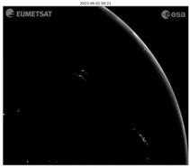 Het gaat om de nieuwe MTG-I satelliet (Meteosat Third Generation-Imager) van de Europese ruimte-organisatie EUMETSAT. De satelliet is gelanceerd in december 2022 en bevindt zich nu op ongeveer 36.000 kilometer hoogte recht boven de evenaar in een zogenaamde geostationaire baan. De snelheid waarmee de satelliet door de ruimte vliegt is zo gekozen dat hij precies meedraait met de aarde en de zwaartekracht hem op zijn plek houdt. Recht naar beneden kijkend ziet de satelliet altijd hetzelfde stukje aarde, net buiten de westkust van Afrika, een stukje oceaan dat de Golf van Guinea heet. Naar het noorden kijkend heeft de satelliet een goed zicht op het weer in Europa (figuur 1).