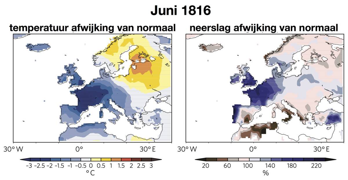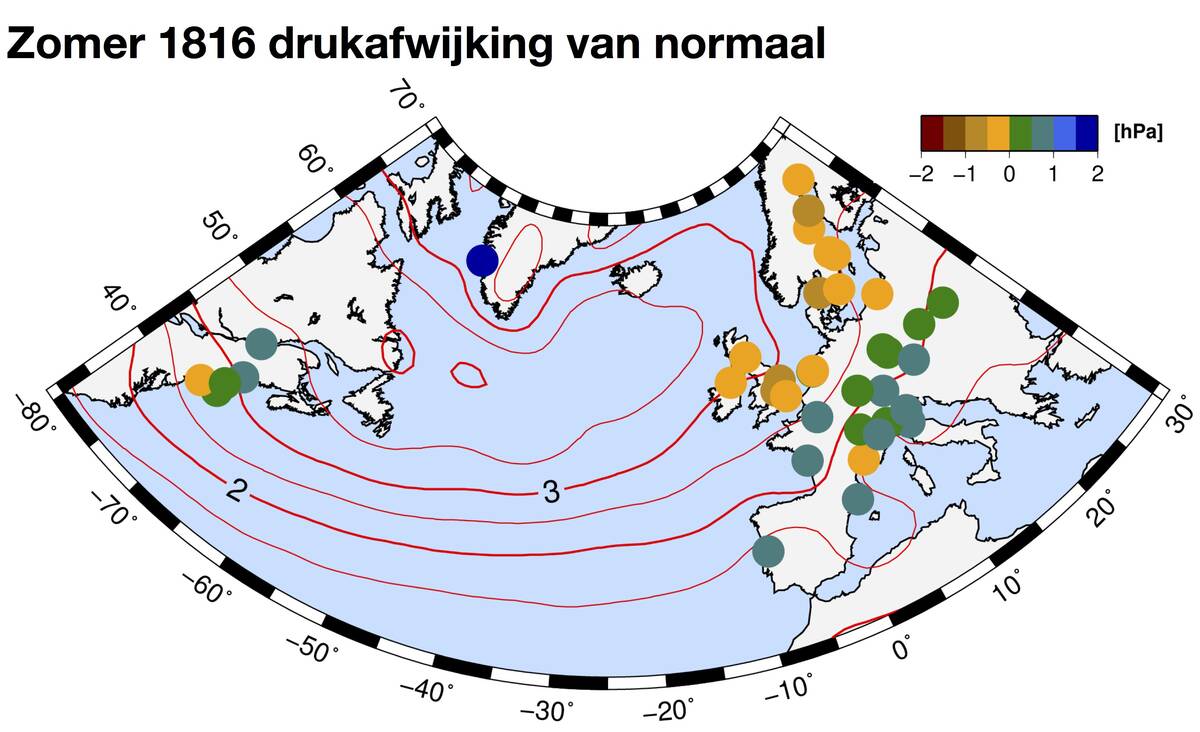 Het jaar 1816 staat bekend als het jaar zonder zomer. Reconstructies op basis van oude metingen laten zien dat het IJsland lagedrukgebied zich die zomer verder uitstrekte Europa in. De zomer in Europa was mede daardoor extra koud en nat (zie figuren hieronder) wat leidde tot misoogsten en sterfte van vee door voedseltekorten. Als reactie op deze misoogsten is men na gaan denken over kunstmest. Gebrek aan paardenvoer leidde tot een tekort aan vervoer over land met paarden.
