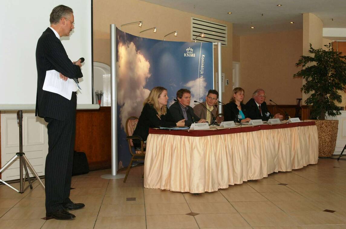 De nieuwe klimaatscenario’s zijn op 30 mei op de Scheveningse Pier aangeboden aan staatssecretaris Melanie Schultz van Haegen van het Ministerie van Verkeer en Waterstaat. Volgens Prof. Gerbrand Komen, onder wiens verantwoordelijkheid de scenario’s zijn ontwikkeld, zijn ze bedoeld voor studies naar de effecten van klimaatverandering bijvoorbeeld voor waterbeheer, ruimtelijke ordening, energievoorziening, landbouw en luchtkwaliteit. “Klimaatscenario’s zijn consistente en plausibele beelden van een mogelijk toekomstig klimaat en bieden de mogelijkheid om het beleid hierop af te stemmen. De klimaatverandering zou ook nog anders en extremer kunnen verlopen, maar daarvoor zijn de aanwijzingen uiterst onzeker.”Hoewel klimaatschommelingen van alle tijden zijn, hebben wetenschappers vastgesteld dat de mens bijdraagt aan de huidige opwarming van de aarde door de uitstoot van broeikasgassen. In ons land hangen temperatuur en neerslag nauw samen met de windrichting. Onduidelijk is nog of de luchtstromingen en dus de windrichting boven West-Europa door het versterkte broeikaseffect gaan veranderen. In de nieuwe KNMI klimaatscenario’s wordt daar voor het eerst rekening mee gehouden: twee scenario’s gaan uit van onveranderde luchtstroming en twee andere scenario’s laten zien hoe temperatuur en neerslag in ons land veranderen als ook de luchtstroming verandert. Om dit in kaart te brengen is gebruik gemaakt van de nieuwste computerberekeningen die ook de basis vormen voor het eerstvolgende rapport van het IPCC, het Intergouvernementeel klimaatpanel van de Verenigde Naties, dat in 2007 zal verschijnen.