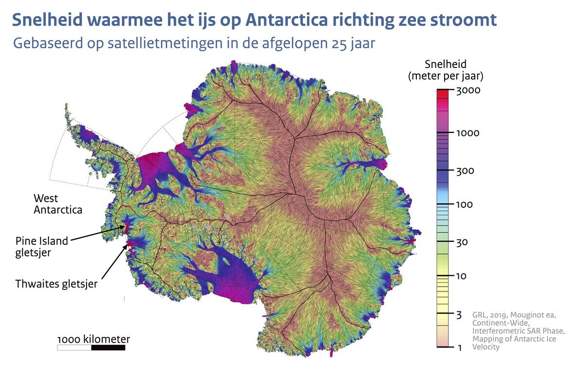 Door de sterke opwarming van de Zuidelijke Oceaan smelten gletsjers aan de rand van het Antarctische continent aan de onderkant snel weg. Hierdoor worden de landinwaarts gelegen ijsmassa’s instabiel, en storten uiteindelijk in. Het verdwijnen van Antarctisch landijs draagt direct bij aan zeespiegelstijging. Een recente studie laat zien dat het afbreken van twee Antarctische gletsjers op termijn onvermijdelijk is. Hierdoor zal de zeespiegel wereldwijd met minstens 1 meter stijgen, en langs de Nederlandse kust zelfs met ongeveer 1,25 meter.