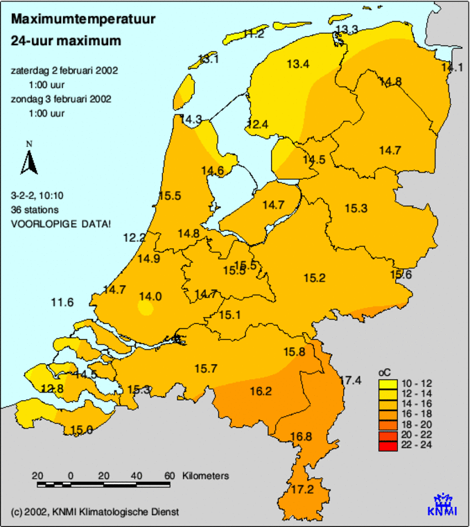 Het koninklijk huwelijksfeest profiteerde zaterdag 2 februari 2002 van voorjaarsachtig weer met temperaturen van 15 graden. In het zuidoosten van het land werd zelfs ruim 17 graden gemeten (17,4 in Arcen), in De Bilt 15,5 graden. Voor De Bilt is dat een nieuw recordvoor begin februari: het vorige was 14,7 graden op 7 februari 1990. Op 9 februari 1989 werd in Epen Zuid-Limburg 17,6 graden gemeten, landelijk de hoogste temperatuur in de eerste tien dagen van de maand. Het koninklijk paar heeft geluk gehad, het had net zo goed streng kunnen vriezen, zoals in 1956 toen De Bilt op deze dag -17,4 graden noteerde.