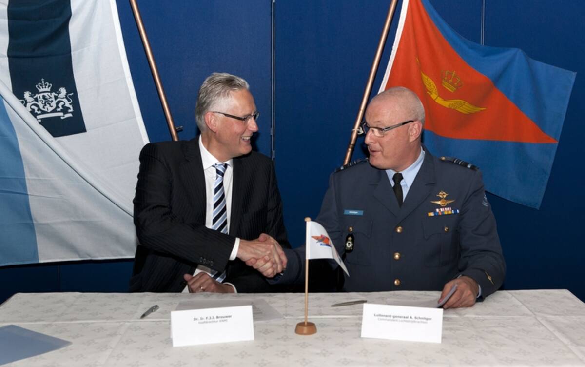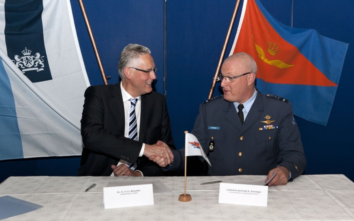 Commandant Luchtstrijdkrachten luitenant-generaal Alexander Schnitger en KNMI-hoofddirecteur Frits Brouwer hebben op 27 mei de overeenkomst, opgezet in lijn met de nieuwe wet op de Meteorologie en Seismologie getekend in het Militaire Luchtvaart Museum in Soesterberg.