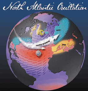 De kwetsbaarheid voor klimaatvariaties zoals de NAO worden vergroot doordat een periode met rustig weer zoals onder een negatieve NAO, vaak samenvalt met koud en vriezend weer. Dus een periode met lage windenergieopbrengsten valt vaak samen met een periode waar de vraag naar energie hoog is. Het KNMI zet zich in om deze kwetsbaarheid voor grootschalige variaties in het klimaat, zoals de NAO, in kaart te brengen en te kwantificeren.