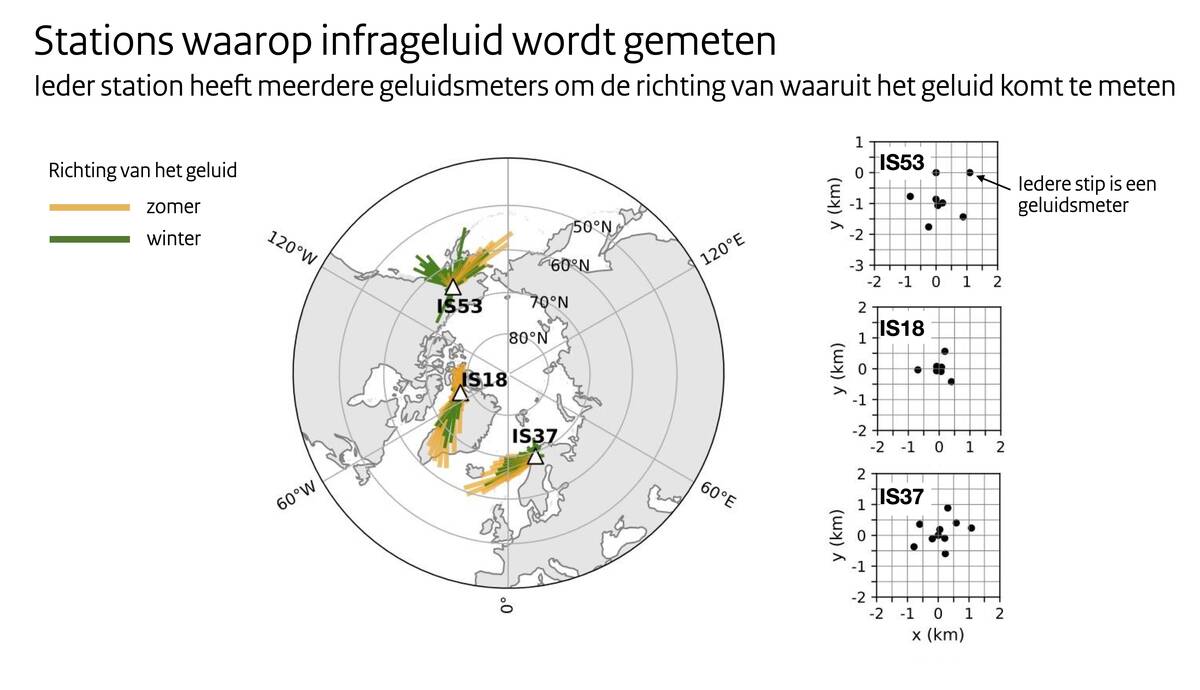 Infrageluid is laagfrequent geluid dat onhoorbaar is voor mensen en kan worden gemeten op de grond met zeer gevoelige barometers (‘microbarometers’). Door meerdere microbarometers dichtbij elkaar op te stellen kan de richting van het infrageluid worden bepaald. De poolwervel speelt een belangrijke rol in de voortplanting van infrageluid: door de sterke wind blijft het geluid gevangen tussen de grond en zo’n 50 kilometer hoogte. Hierdoor draagt het geluid veel verder waardoor het tot op grote afstand van de bron kan worden gemeten.