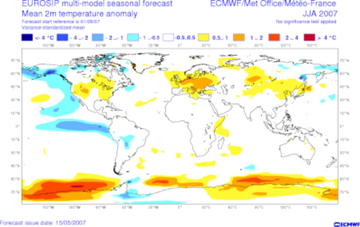 Volgens diverse weermodellen wordt de zomer van 2007 in vrijwel heel Europa warm. De berekeningen geven aan dat de zomer gemiddeld zo'n 1 tot 2 graden warmer wordt dan het langjarig gemiddelde.