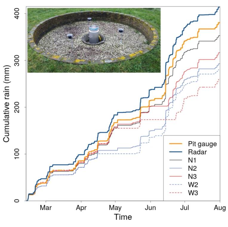 De regenmeters van het KNMI staan allemaal in buitengebieden om aan de internationale eisen te voldoen. De metingen mogen namelijk niet beïnvloed worden door de omgeving. Met de neerslagradar kunnen wel regenhoeveelheden boven een stad ook in kaart worden gebracht maar deze zijn grofmazig. Voor een nauwkeurige analyse zijn metingen vanaf de grond ook belangrijk.