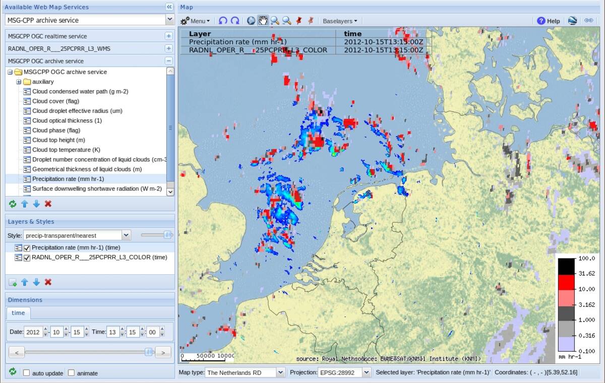 Naast het live bekijken van de Meteosat-metingen biedt de site http://msgcpp.knmi.nl/ allerlei mogelijkheden zoals in-en uitzoomen, beelden over elkaar heen leggen en filmpjes maken.