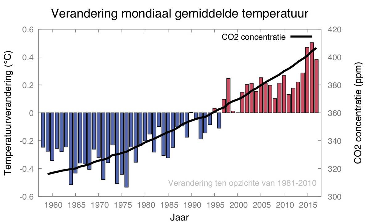 Klimaatmodellen werden in het verleden vaak bekritiseerd omdat ze het temperatuurverloop aan het aardoppervlak (daar waar wij leven!) over de periode 2000-2015 niet goed weergeven. Terwijl ze een opwarming simuleren (zoals op grond van het toenemende broeikaseffect te verwachten is), laten de metingen voor die periode een min of meer constante temperatuur zien (Figuur 2). De oplossing is simpel: tijdelijk namen de oceanen iets meer warmte op dan normaal. Intussen is die anomale periode trouwens voorbij. De jaren 2015-2018 waren wereldwijd de vier warmste jaren ooit gemeten.