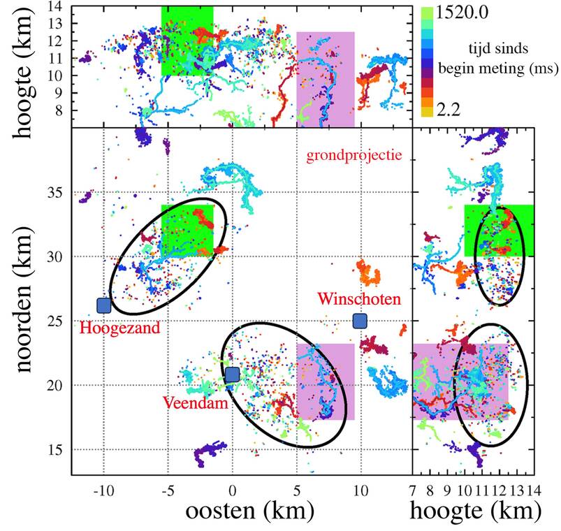 Met onze ogen zien we bliksem als een flits, waarna we met onze oren het geluid horen: de donder. Bliksemdetectiesystemen meten de plaats, tijd en eigenschappen van de bliksem met radiogolven in een speciale frequentieband. Bliksemdetectiesystemen kunnen de ontladingen tussen de wolken en de grond nauwkeurig bepalen, maar kunnen een deel van de ontladingen in de wolken, die veel vaker voorkomen, missen. Het blijkt dat de LOFAR radiotelescoop in Drenthe, aangelegd voor het meten van radiogolven uit het heelal, ook deze bliksemontladingen zeer gedetailleerd en precies kan meten (zie onderstaande animatie).