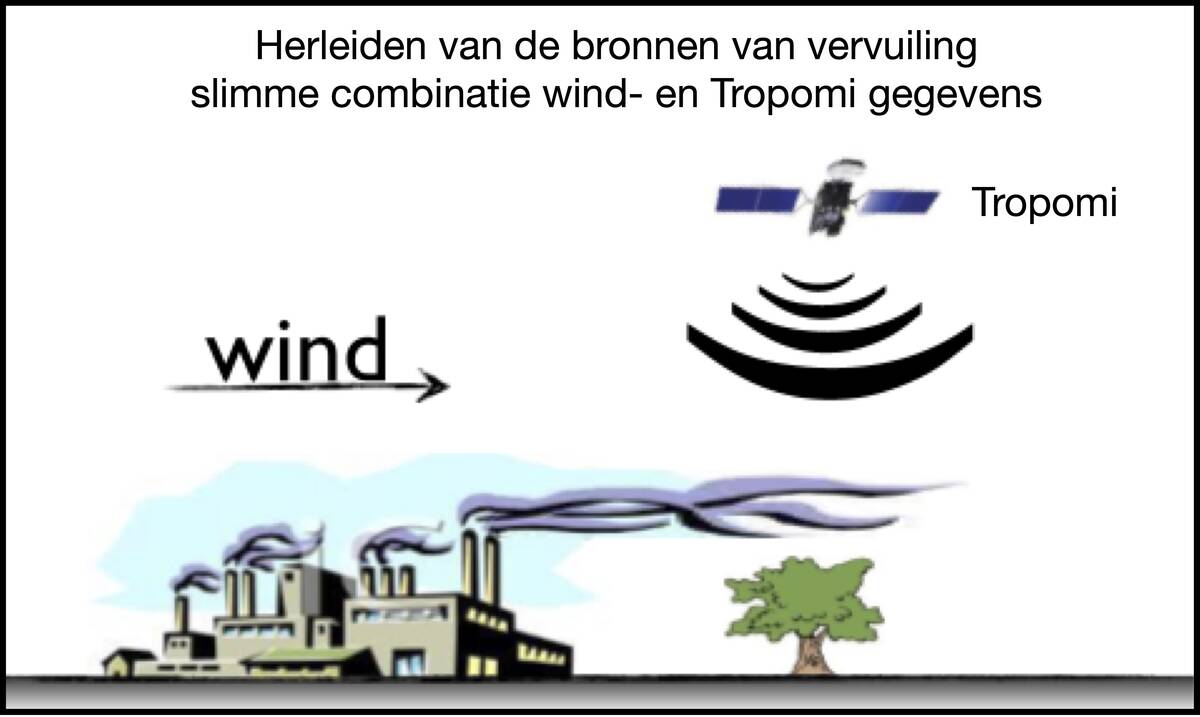 Het Nederlandse satellietinstrument Tropomi meet sinds oktober 2017 dagelijks wereldwijd de samenstelling van de atmosfeer in ongekend detail. Slimme algoritmes combineren de Tropomi metingen met andere gegevens en leiden zo af waar de vervuiling vandaan komt. De wind aan de grond is hierbij cruciaal. Zo blijkt het mogelijk om uit de satellietmetingen nauwkeurige schattingen te maken van de uitstoot van individuele elektriciteitscentrales en van schepen. Deze nieuwe mogelijkheden om wereldwijd te monitoren wie, wat, waar, wanneer en hoeveel uitstoot bieden ondersteuning aan internationale milieu- en klimaatafspraken.