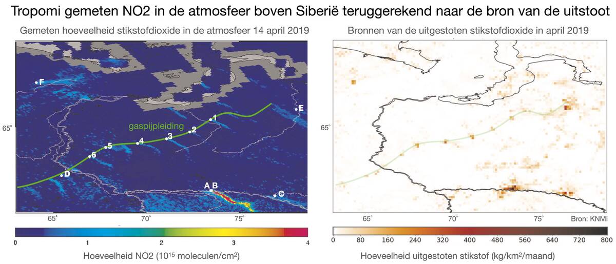 De verwachting is dat er steeds meer en krachtiger methoden ontwikkeld gaan worden om kwantitatief de sterkte van vervuilingsbronnen te bepalen. Hierdoor kunnen ook veranderingen in de bronnen worden gezien en langjarige trends bepaald. Twee recente voorbeelden van gekwantificeerd onderzoek door het KNMI naar continue bronnen zijn het lekken van methaan bij de schaliegaswinning in Texas en de NO2 emissies van compressorstations langs een gasleiding in Siberië (figuur 3). Bij incidentele lekkages hangt detectie af van toeval. Is de pluim van vervuiling gezien of niet? Zeker bij bewolkt weer kan een grote pluim onopgemerkt blijven. Al binnen enkele dagen wordt elke pluim zoveel verspreid en verdund dat hij niet meer zichtbaar is.