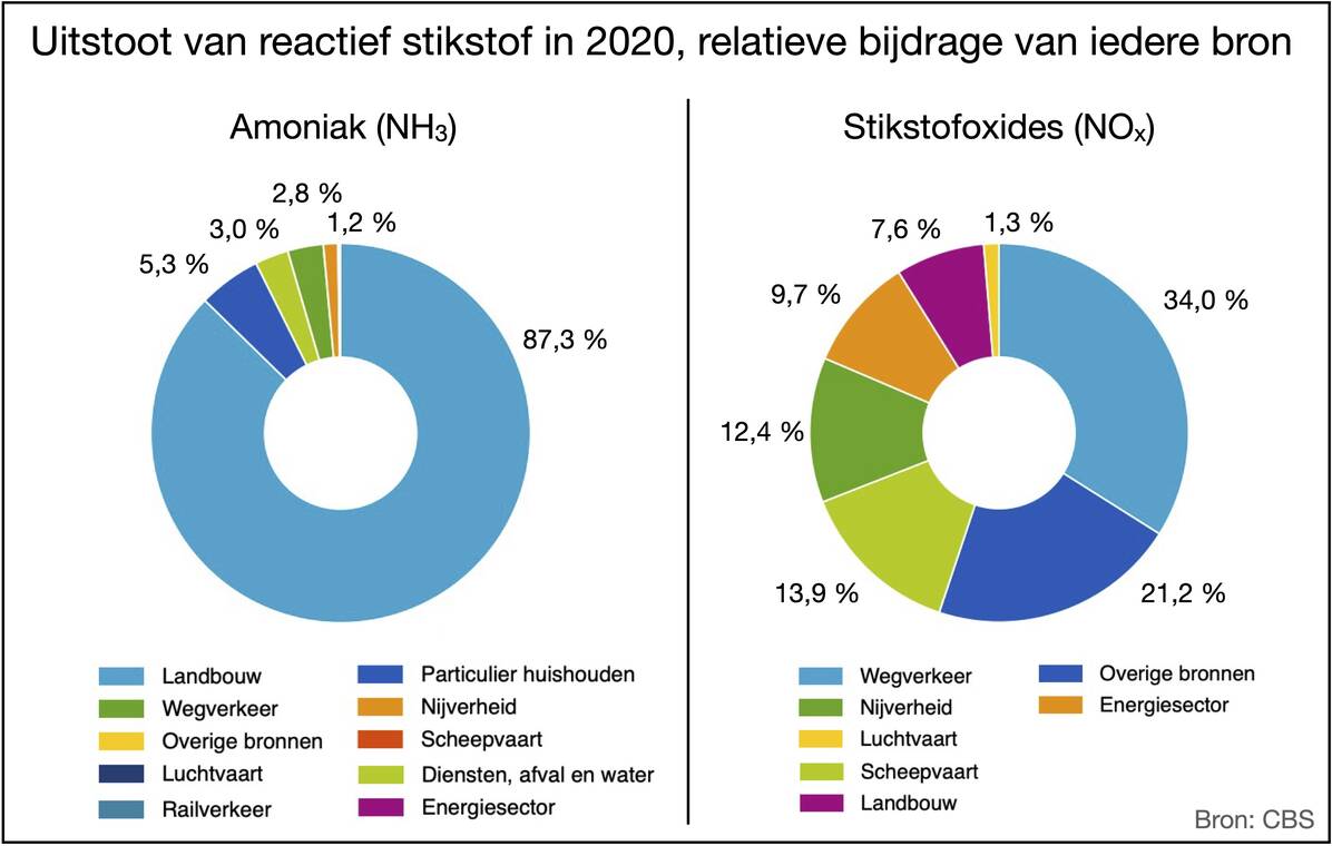 Ook is de hoeveelheid reactief stikstof in Nederland afgenomen sinds de jaren 80. De afname is minder dan de afname van zwavel en verloopt de laatste jaren ook minder snel. Ammoniak komt vooral uit de landbouw, stikstofoxides komen vrij bij hoge-temperatuur verbranding, zoals bij auto’s, energiecentrales en de CV-ketel (figuur 1).