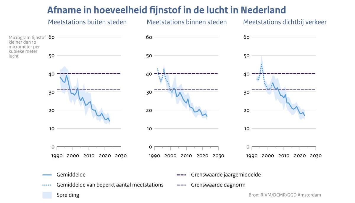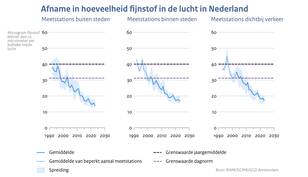 Wat betreft fijnstof is de lucht in Nederland de afgelopen decennia een stuk schoner geworden, zo blijkt uit de metingen van onder andere het RIVM (afbeelding 2). Ook de meteorologen van het KNMI zien dat de lucht schoner is geworden. Doordat er minder aerosolen, en dus minder condensatiekiemen in de lucht zijn, neemt het aantal uren met mist gestaag af, en het aantal uren met goed zicht juist toe (afbeelding 3). Ook het aantal uur zonneschijn is vanaf de jaren tachtig flink toegenomen (afbeelding 3) toe. Door de schonere lucht wordt het weer dus zonniger en minder mistig!