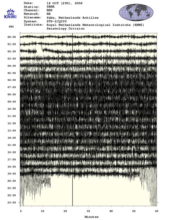 Ook de seismische KNMI-stations op de eilanden Sint Maarten, Saba en Sint Eustatius hebben last gehad van de orkaan Omar. Het ruisniveau van deze meetstations is op 16 oktober, toen de orkaan langs de eilanden raasde, vele malen groter dan normaal.