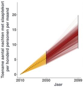 De gemiddelde minimumtemperatuur in de zomer in De Bilt is sinds 1950 ruim een graad gestegen, van rond de 11 tot meer dan 12 graden nu. Het KNMI verwacht een verdere stijging aan het eind van deze eeuw tot 16 graden in het warmste scenario. In de grote steden zullen de nachten nog sterker opwarmen door het stadseffect. Door het vele beton en asfalt dat de warmte van overdag lang vasthoudt, en minder koeling door minder wind en minder verdamping kan het in een grote stad als Amsterdam wel 5 graden warmer zijn dan in het omliggende platteland.