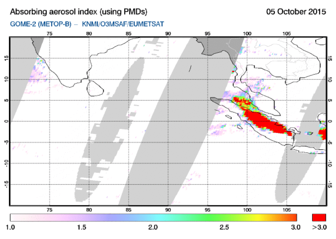 De roetdeeltjes en stoffen zoals koolmonoxide die bij de branden vrijkomen, worden de lucht ingeblazen en verspreiden zich over vele honderden kilometers. De gevolgen hiervan worden in grote delen van zuidoost Azië gevoeld. De wind staat in deze tijd van het jaar bijvoorbeeld voor Singapore ongunstig zodat de inwoners van de miljoenenstad last hebben van de smog als gevolg van de branden op Sumatra. De situatie wordt permanent gemonitord aan de hand van satellietwaarnemingen en -modellen in het kader van het Europese milieuprogramma Copernicus, waar het KNMI aan meewerkt.